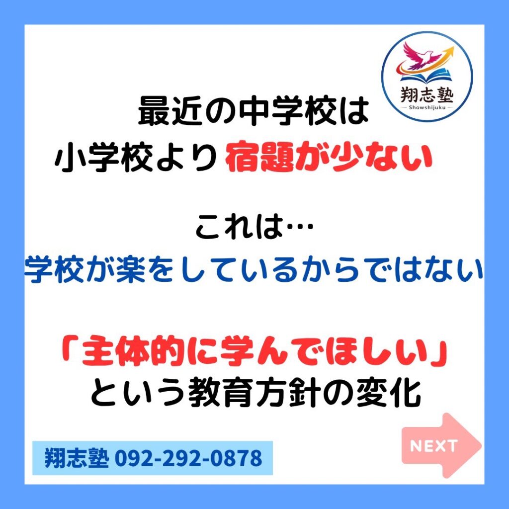 最近の中学校では小学校より宿題が少ない学校が増えています📉